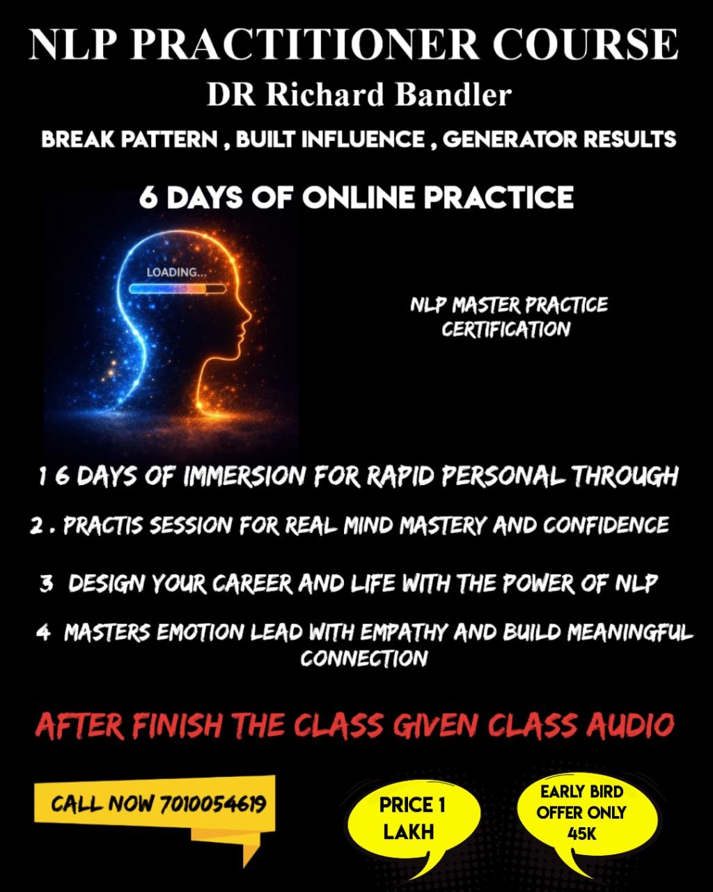 This is a 1 day Online workshop, starting at 10am and finishing at 1 pm. Workshop fee is 5000 RS One To One / Group Sessions I also run training courses on request for individuals on a one to one basis or for groups. If you are interested please give me a call on 7010054619  and we can arrange a course on a day that suits.​